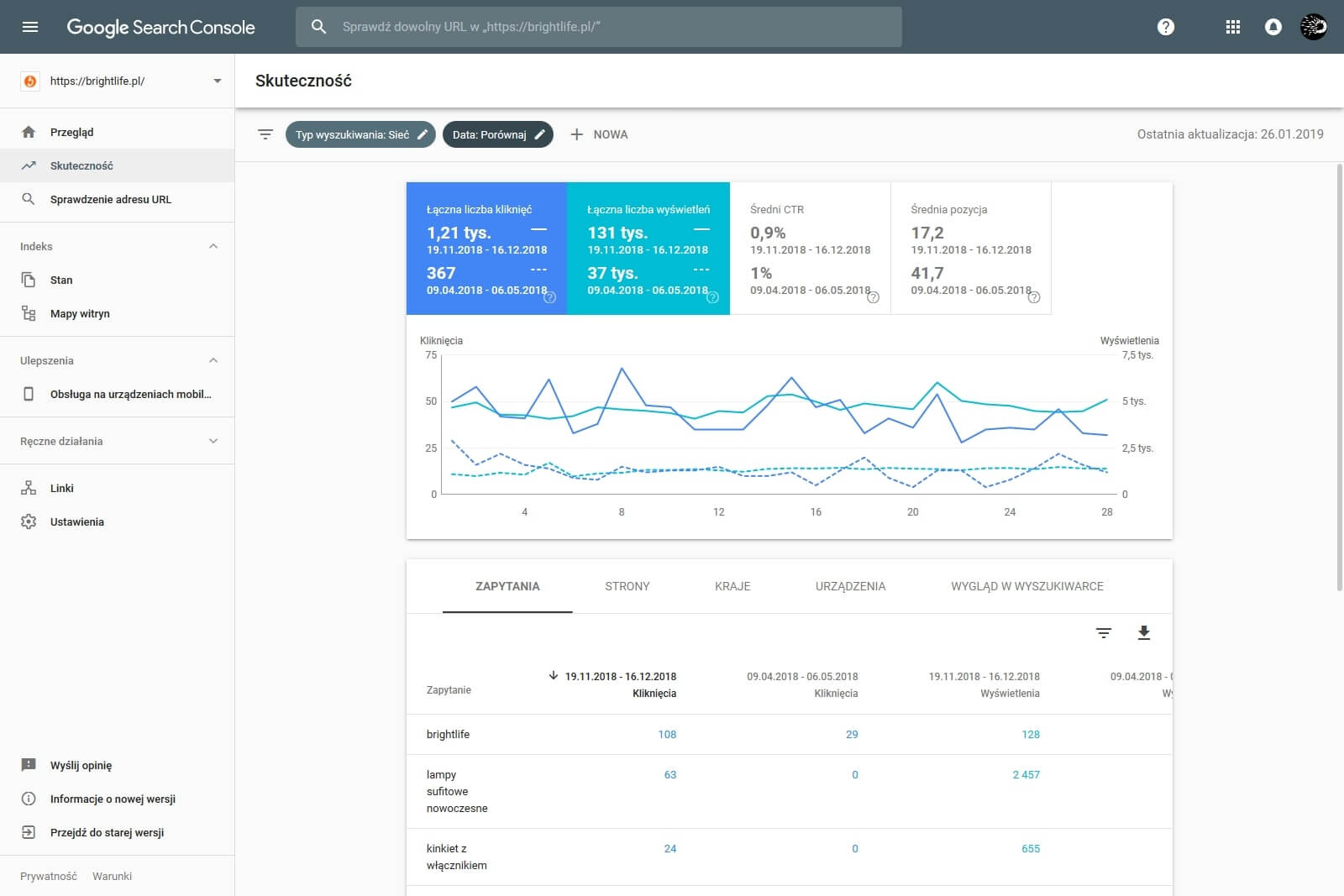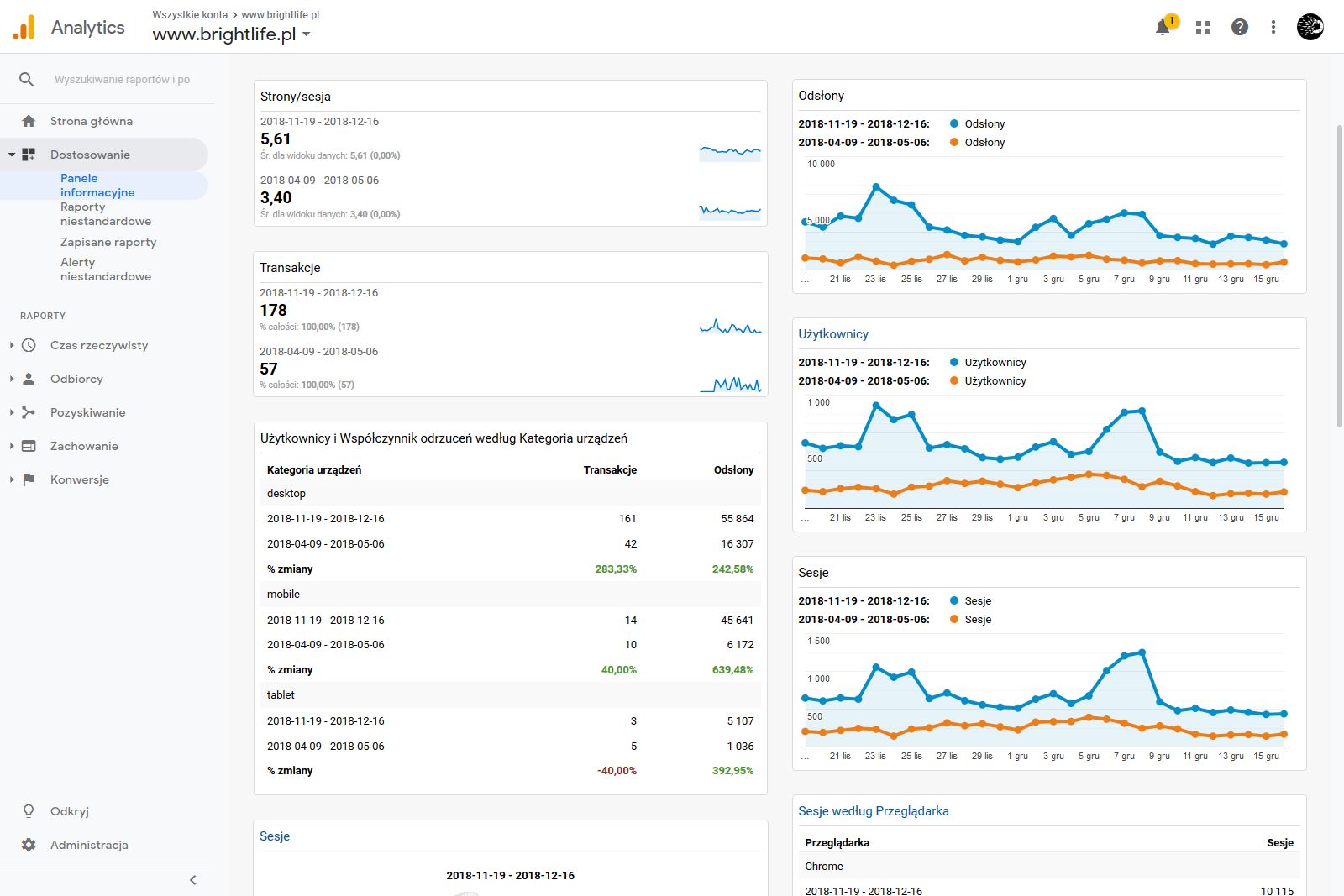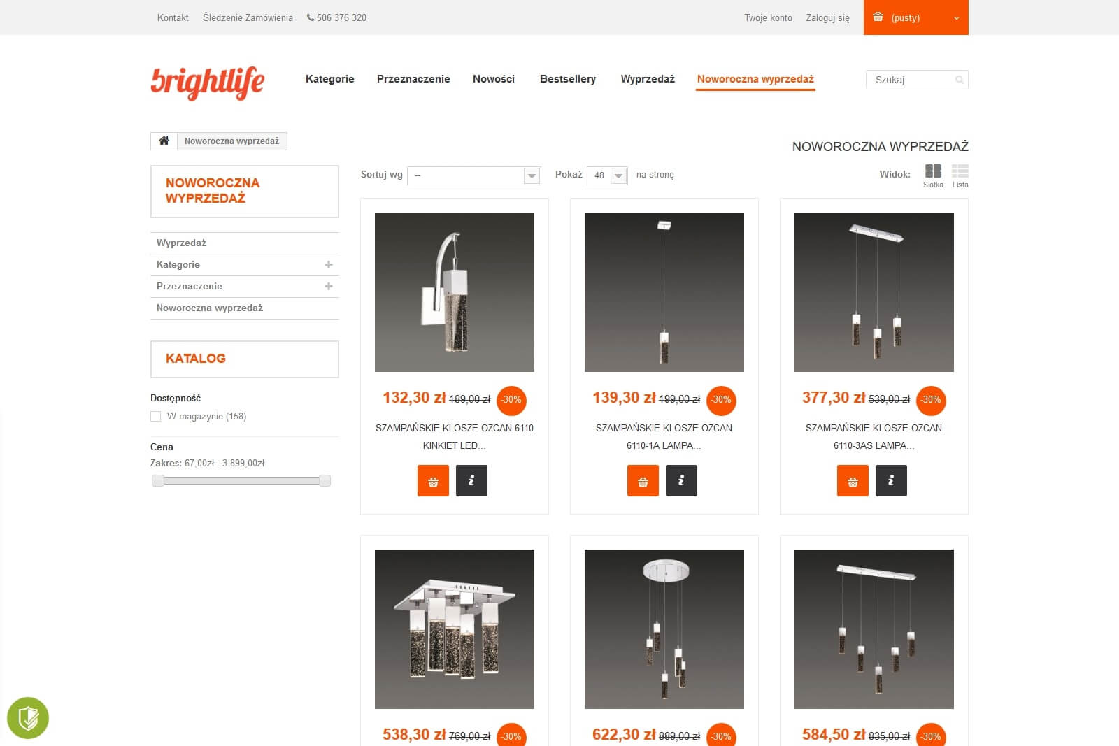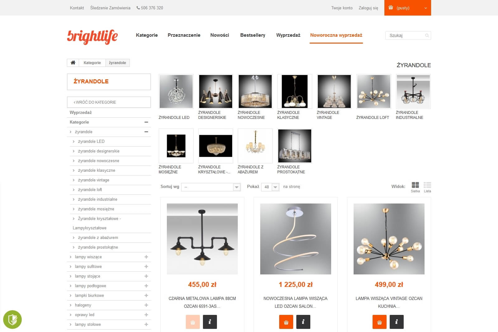 Współpracę z Brightlife rozpoczęliśmy w połowie 2018 roku, wcześniej przez 3 lata firma była obsługiwana przez dwie inne agencje, niestety bez widocznych efektów biznesowych. Klient posiadał stronę firmową www.fashionlight.pl i sklep internetowy na systemie Prestashop. Zaczęliśmy od analizy obu stron, zbadaliśmy kwestie użyteczności, widoczności w internecie oraz stopień realizacji celów biznesowych. Przygotowaliśmy rozbudowany raport wraz z sugerowaną strategią działań i potrzebnym budżetem, po konsultacji z klientem, nadaliśmy priorytety i podzieliliśmy pracę na etapy.