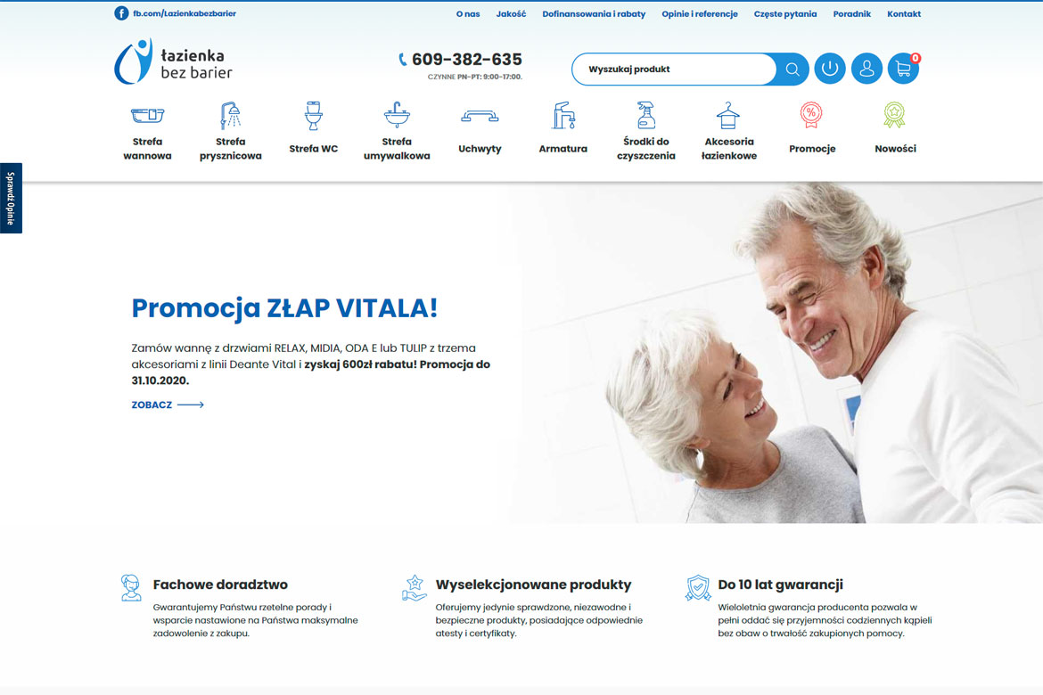 Łazienka bez barier to projekt zapoczątkowany z myślą o potrzebach osób starszych i nie w pełni sprawnych. Zgodnie z misją naszego Klienta, jaką jest usuwanie codziennych barier, podjęliśmy się stworzenia czytelnego i w pełni intuicyjnego sklepu online, dostosowanego do szczególnych potrzeb grupy docelowej.