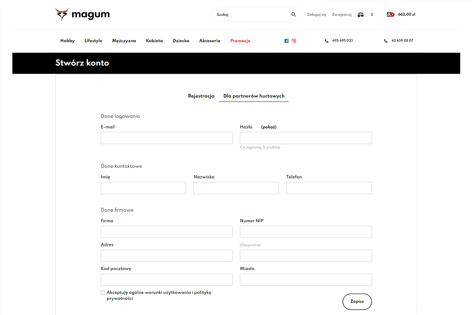 Firma Magum od 2005 zajmuje się hurtową sprzedażą wysokiej jakości odzieży oraz obuwia dla ludzi aktywnie spędzających czas na świeżym powietrzu. Nowy sklep internetowy to dal nich kolejny krok ekspansji w obszarze hurtu dzięki dedykowanym rozwiązaniom B2B. To również zdecydowany krok naprzód na rynku produktów sprzedaży detalicznej.
