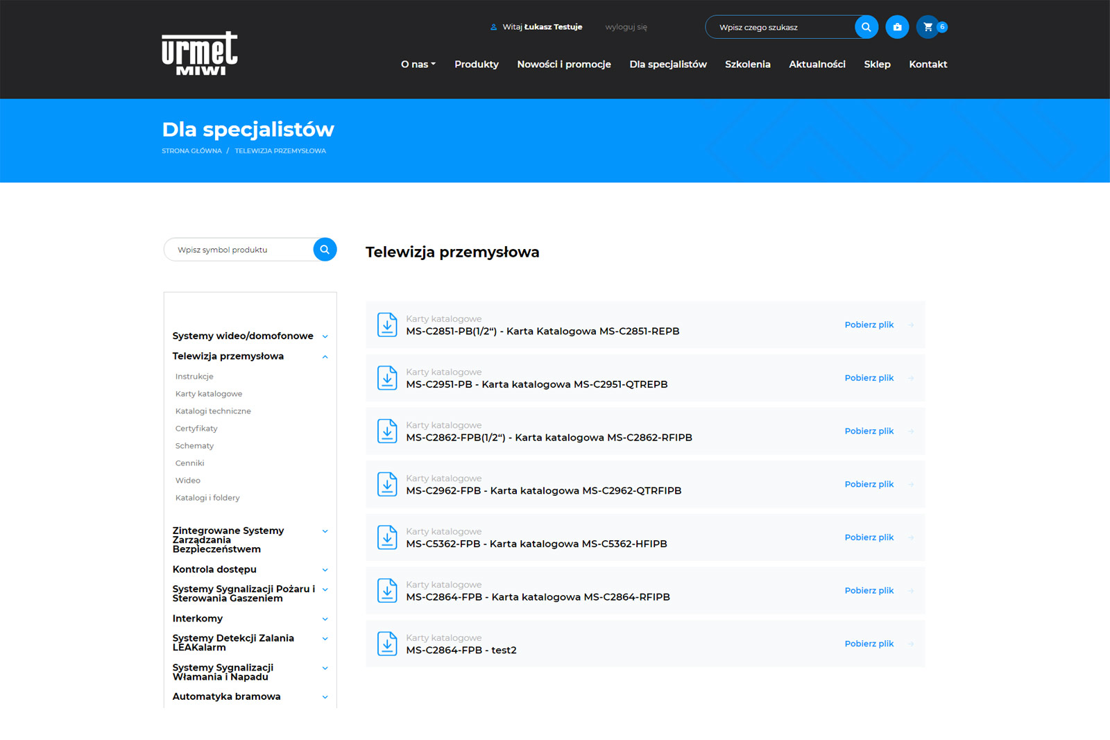 Wdrożyliśmy strefę z plikami do pobrania, której zawartość automatycznie aktualizuje się na podstawie synchronizacji z urmet.com.pl.