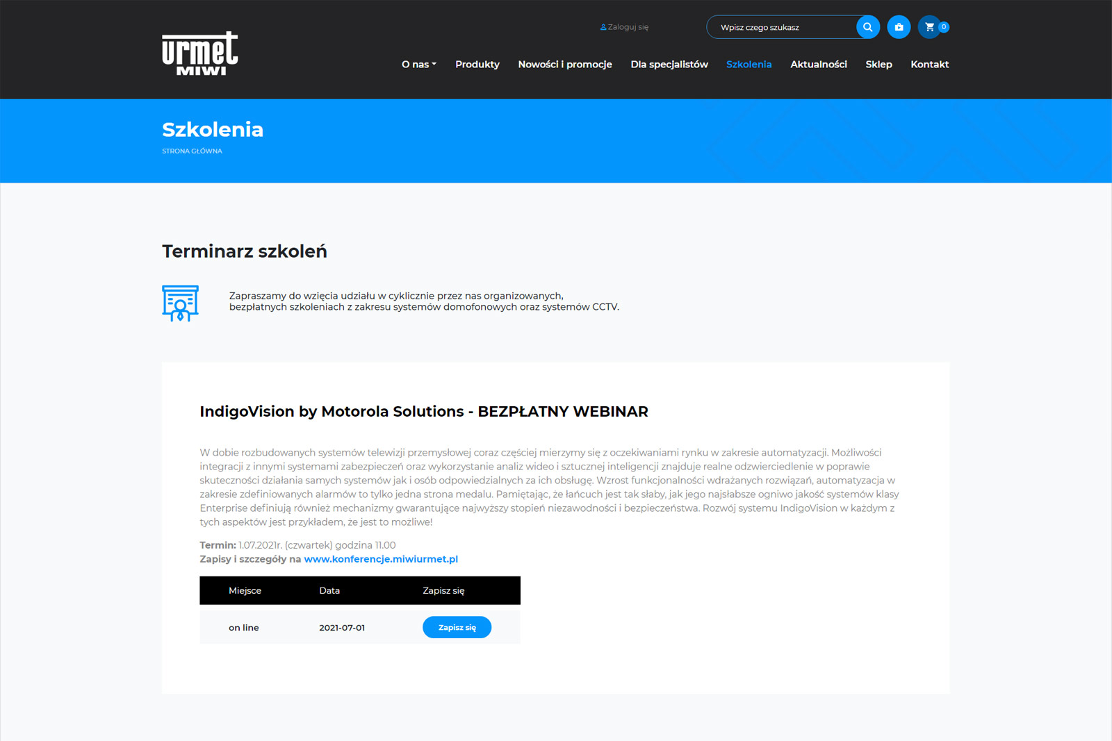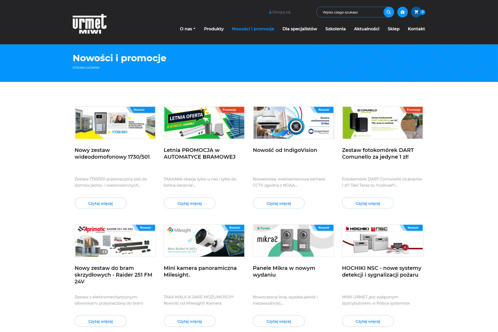 Miwi Urmet to jeden z liderów na rynku dystrybucji systemów zabezpieczających mienie oraz ludzi. Stworzyliśmy dla nich stronę firmową ze sklepem, która była drugą realizacją dla naszego klienta. Udana współpraca przy wulian.pl zaowocowała zleceniem na zdecydowanie bardziej rozbudowany projekt.