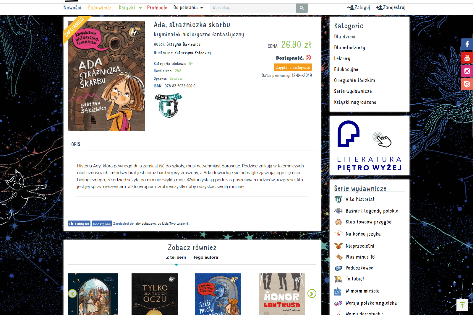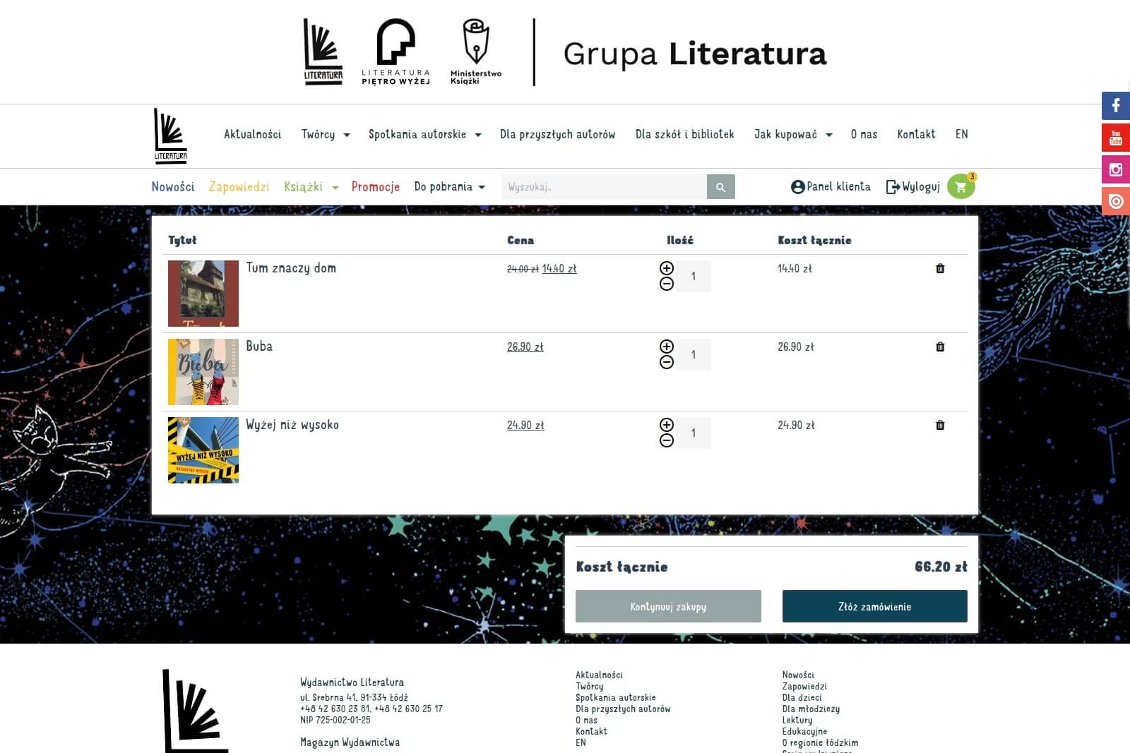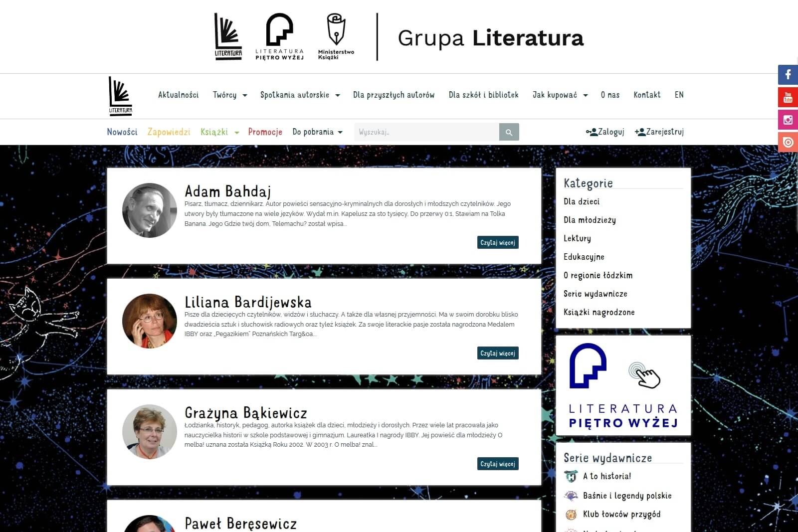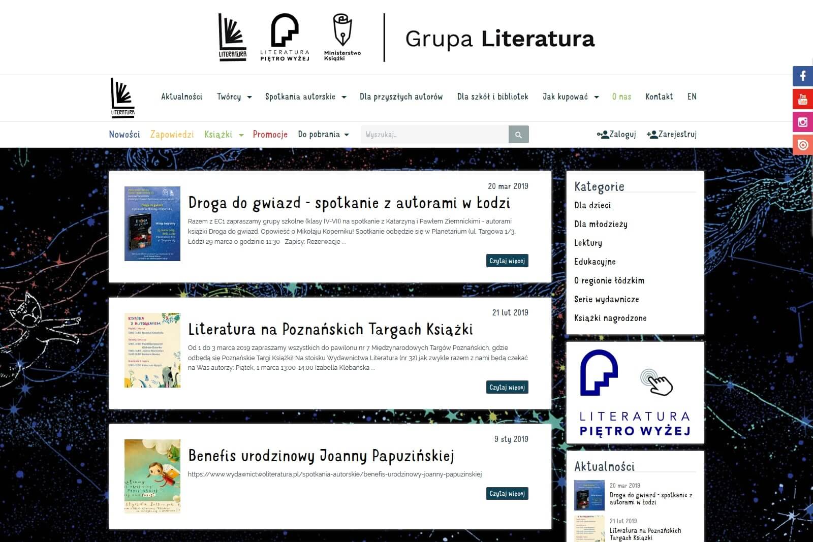 Wydawnictwo Literatura powstało w 1990 roku i od samego początku stawia na polskich autorów, wydająć książki dla dzieci i młodzieży. Klient postawił przed nami wiele wyzwań, od małych (np. ustawianie tła strony w zależności od oglądanej serii wydawnicznej), po duże (np. integracja z eLibri).