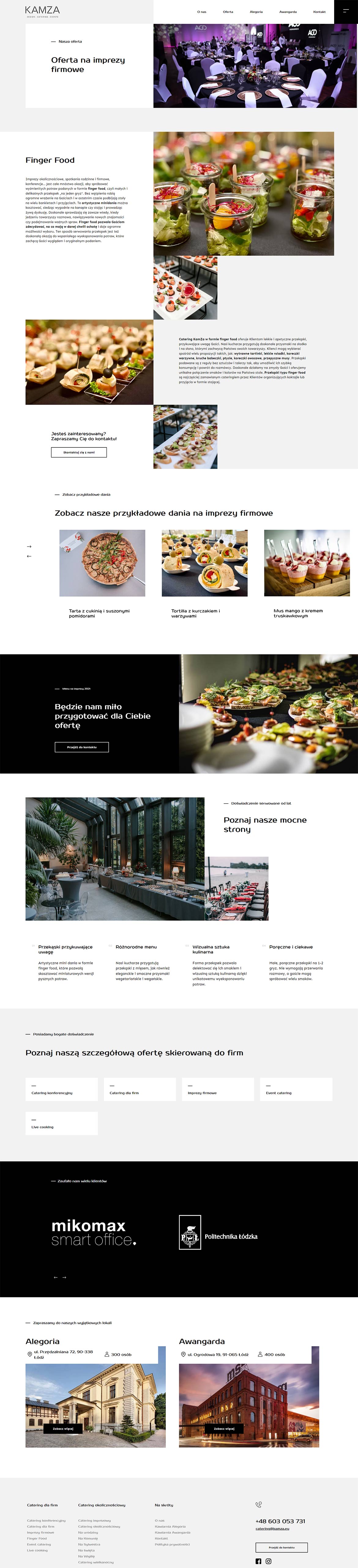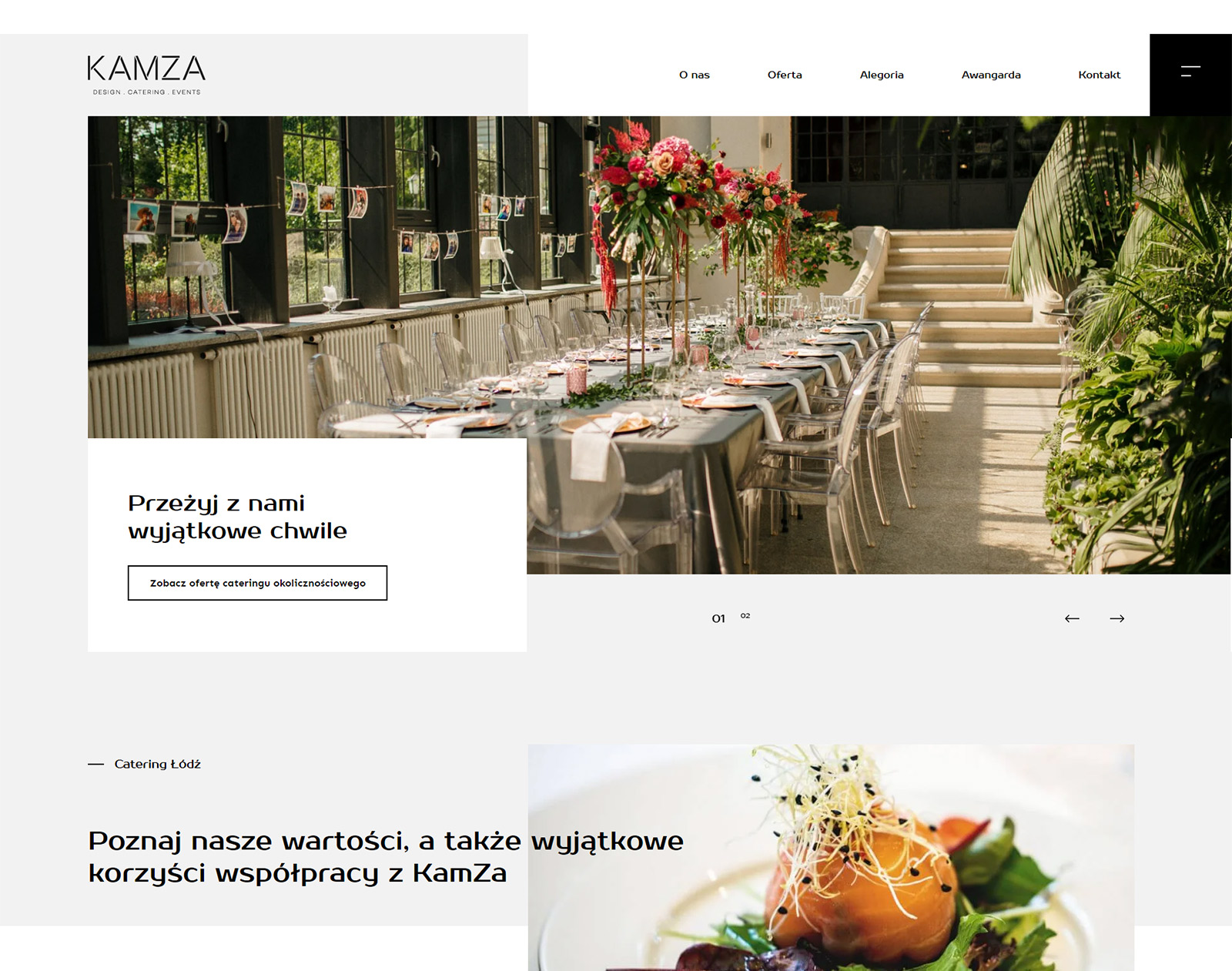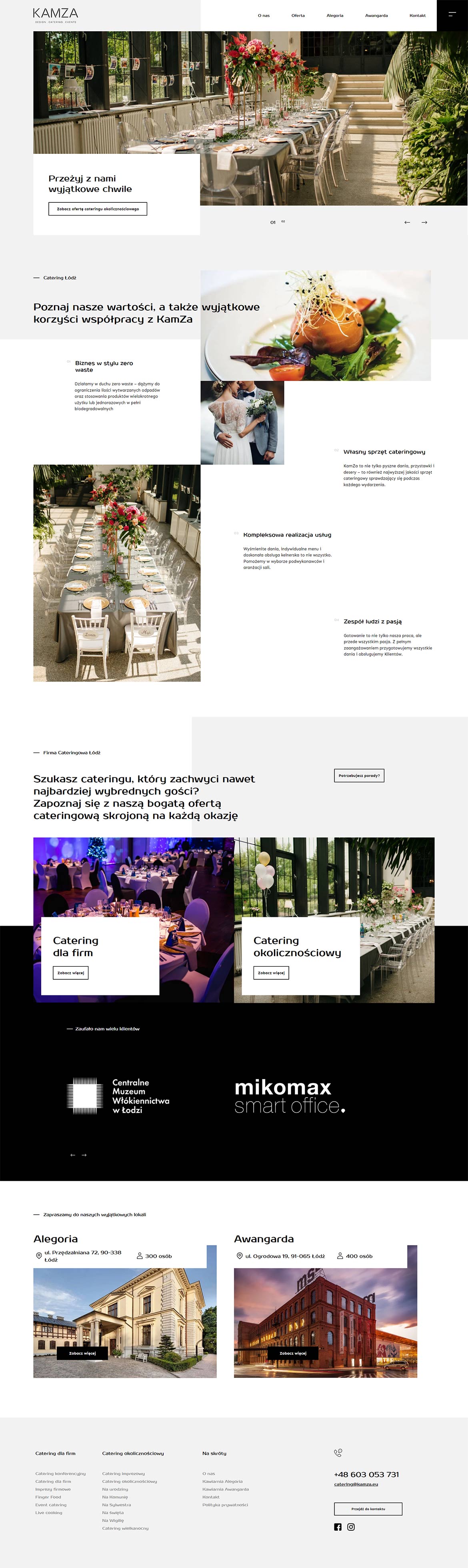 KamZa jest firmą cateringową z Łodzi. Oferują wszechstronne usługi dla firm i klientów indywidualnych. Ich strona internetowa prezentuje również dwie kawiarnie firmowe: Awangardę budynku Muzeum Sztuki w Manufakturze oraz Alegorię w Ogrodzie Zimowym Pałacu Herbsta