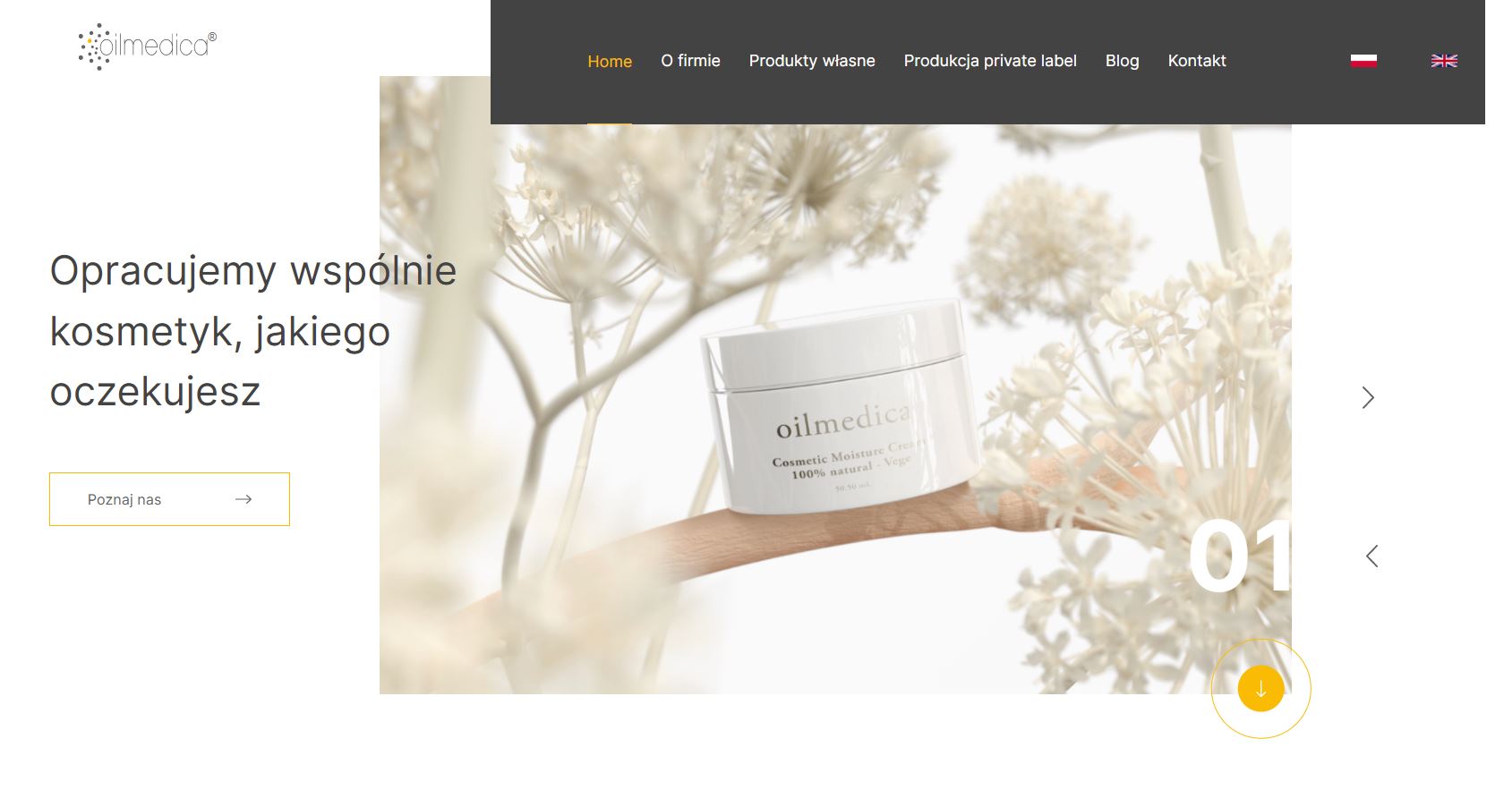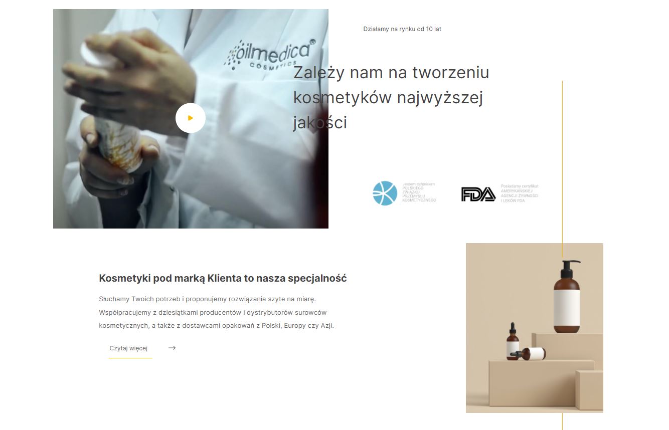 Strona firmowa kontraktowego producenta kosmetyków naturalnych.