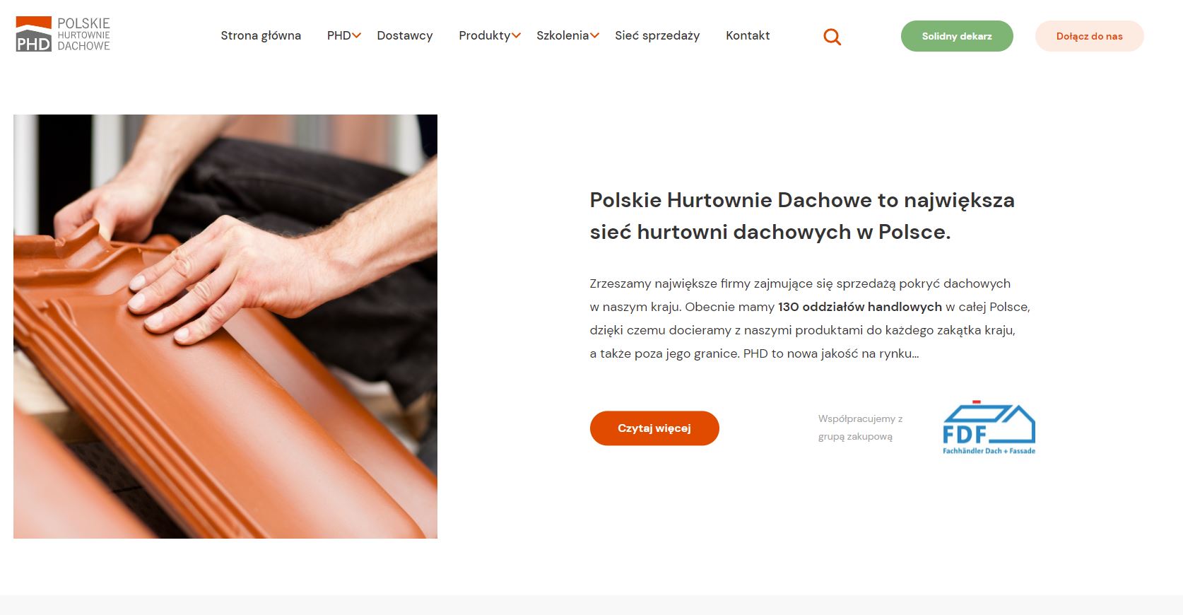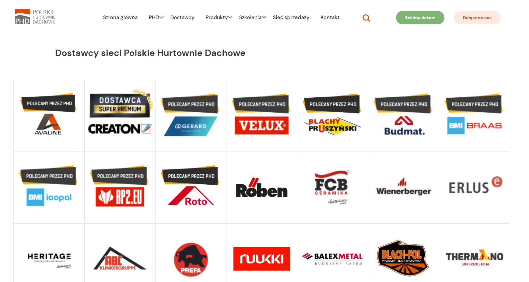 Polskie Hurtownie Dachowe to największa sieć hurtowni dachowych w Polsce. Ich nowa strona internetowa prezentuje rozbudowany asortyment oraz oddziały handlowe w całej Polsce.