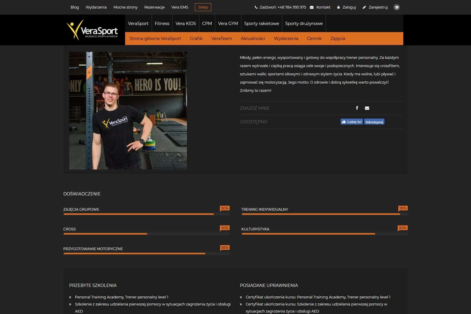 Z doświadczenia wiemy jak istotną rolę w fitnessie i sporcie odgrywają instruktorzy, to oni przyciągają klientów i sprawiają, że chce się wracać na treningi. Wraz z Vera Sport opracowaliśmy zestaw informacji dotyczących każdego z instruktorów, tak by nowi klienci mogli łatwo znaleźć swojego idealnego trenera.