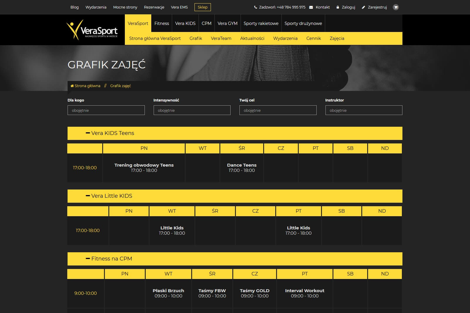 Na stronie odwzorowaliśmy podział klubu wdrażając wyraźny podział na strefy, każda ma swoich instruktorów, indywidualny grafik zajęć, a także aktualności i wydarzenia. Dodatkowo nadaliśmy każdej ze stref inny kolor, by ułatwić użytkownikom odnalezienie się na tak rozbudowanej stronie.