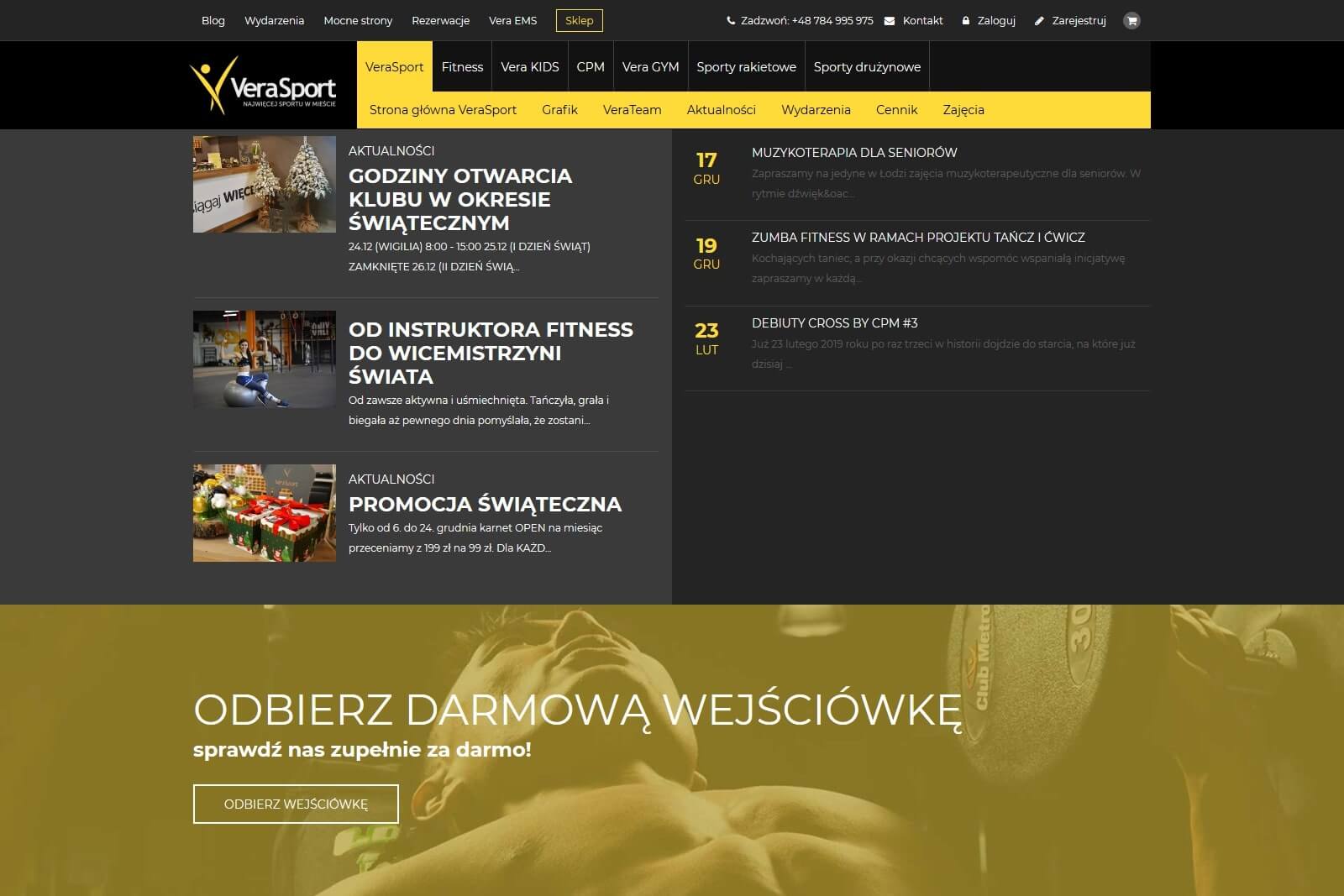 Współpracę z Vera Sport zaczęliśmy pod koniec 2016 roku tworząc landing page z ofertą treningów EMS, rok później zbudowaliśmy kolejną stronę dla tego Klienta, tym razem w branży pośrednictwa pracy. Prawdziwym wyzwaniem było jednak zaprojektowanie i wdrożenie nowej strony klubu Vera Sport, 10 tys. m2 powierzchni sportowej, podzielonej na 9 stref. Unikalność na skalę kraju powoduje, że żadne gotowe rozwiązania nie są w stanie sprostać ich oczekiwaniom. Dzięki dokładnej analizie potrzeb dostosowaliśmy nasz CMS i zbudowaliśmy moduły eliminujące problemy z zarządzaniem na starej stronie, a także wdrożyliśmy wiele nowych pomysłów.