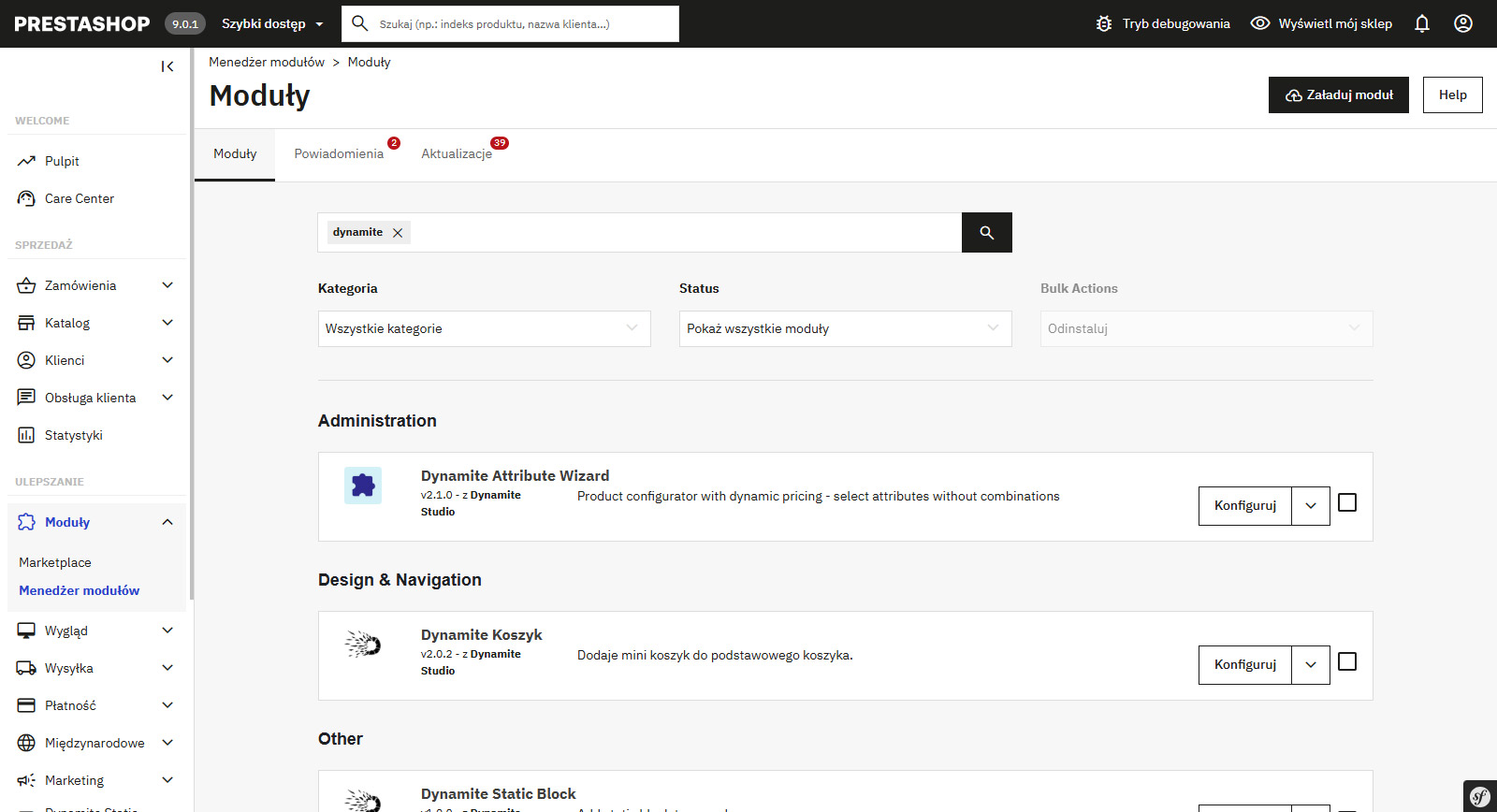 Sklep PrestaShop to z jedna z najdynamiczniej rozwijających się platform ecommerce w Europie. Stworzony przez nas sklep internetowy może być w każdej chwili rozwijany przez dowolną agencję interaktywną pracującą na PrestaShop. Oczywiście będzie nam bardzo miło, jeśli przy rozbudowie ponownie skorzystasz z usług Dynamite Sklepy Internetowe Łódź :)